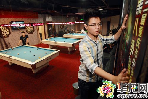 18岁的钟镇阳因为喜好台球运动,便策划举办第二届重庆中学生台球联赛。 记者 李靖 摄