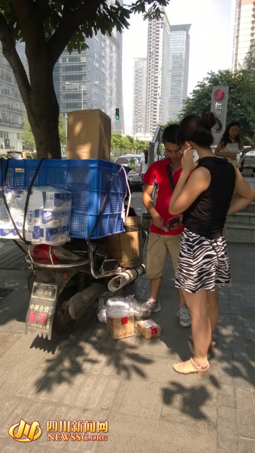 烈日下,快递员正在送货