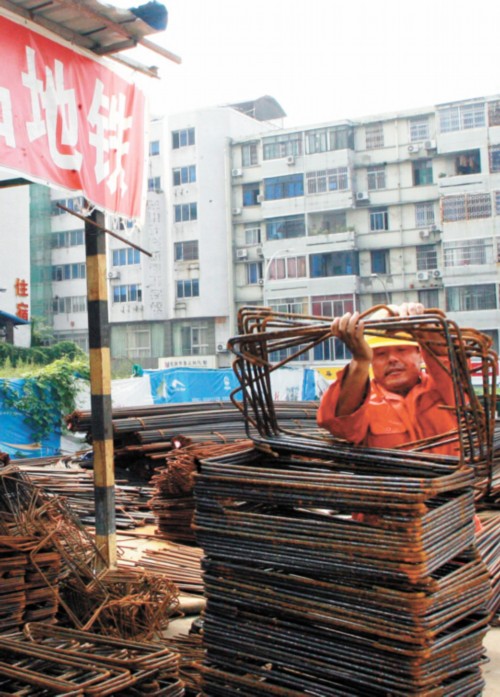 红星路地铁建设工地上,工人们依然在紧张施工。