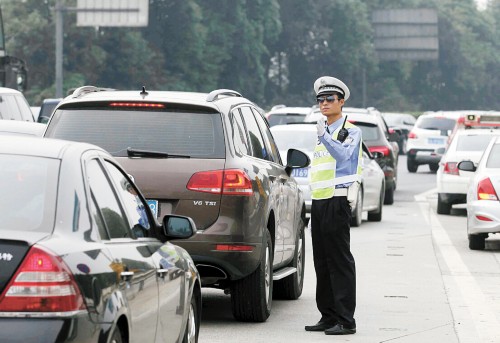 节日的高速路入口,交警的指挥压力骤然增大。