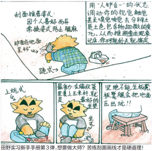 “第二大部分是针对普通公众普及考古知识的,也就是告诉大家考古是个什么样的职业,第三部分是画给考古专业大一、大二的学弟学妹们看的,用漫画表现我们的学习和生活。”李子一说,“直播”实习生活结束后,被自己@了的同学们,纷纷表示不过瘾,强烈要求她继续画下去,她便在老师的建议下决定通过漫画向普通公众“揭秘”考古生活。