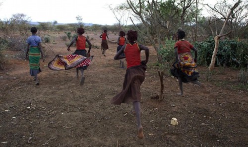 波科特少女跑向割礼的准备地点,在那里,她们会脱去衣服,清洗身体,为割礼做准备。