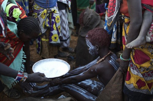 仪式之后,女孩被图上白色涂料,显示她已通过割礼。