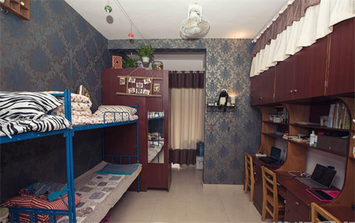 咖啡、米白两色层叠的帘子,桃木色的书桌,偏欧式复古风的暗蓝色墙纸……总共花费不到1500元,装出的效果可是羡煞同学和网友们。这个叫“一间小屋”的女生寝室,出现在长沙理工大学,设计者是该校设计艺术学院的大一新生。