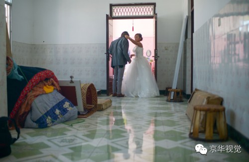 婚房门口,细心地秀秀在给小听整理本不合身的西装。
