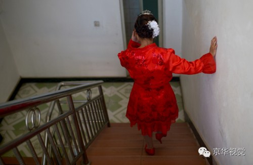 第一次穿高跟鞋的秀秀,很不习惯,下楼梯时小心翼翼。