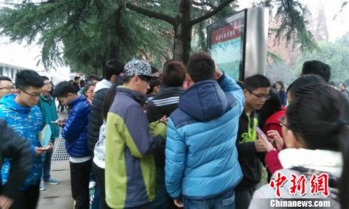 42个班级的班长们在赛前查看“奔跑”示意图。王昌宇摄