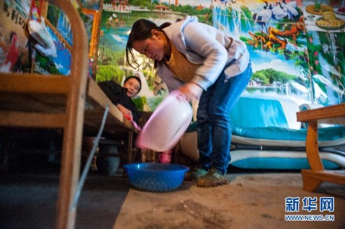 11月24日,罗应艳为养父罗典成更换便盆。摘菜、洗衣、做饭、倒便盆、给父亲换药……这就是“90后”巫山姑娘罗应艳每天的生活。即使已为人母,但7年来照顾瘫痪在床的养父罗典成已成为她生活中最重要的部分。 50多岁的罗典成是重庆市巫山县金坪乡袁都村山区的一位普通农民,20多年前抱养了刚出生十几天的罗应艳。在养父的悉心照料下,罗应艳读完了小学和一半的初中学业。2008年在外打工的罗典成在工地遭遇意外,造成脊椎断裂、下肢瘫痪,从此家庭的重担就落到了年仅14岁的罗应艳身上。罗应艳主动放弃学业,回家照顾瘫痪父亲和年老的奶奶,承担起全家人的生计。由于无钱手术,罗典成坏死的下肢腐烂,罗应艳常常一边哭一边精心给父亲换药洗身。大山孝女罗应艳的故事感动了金坪乡的每个人,2012年在金坪乡干部的协调和努力下,罗典成完成了截肢手术。2013年,罗应艳与外乡小伙雷长保结婚。谈到如今的生活,仍住在漏雨土墙房中的罗应艳说,虽然日子还需要仔细计算着过,但现在已经比过去好了很多。新华社记者刘潺 摄