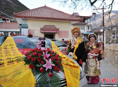图为生活改善如今藏家人结婚也座上了轿车。