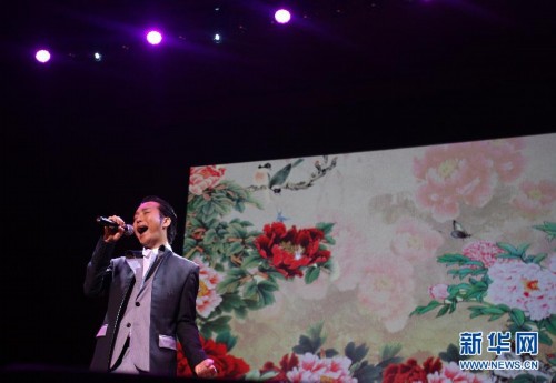 12月21日,在美国纽约林肯中心,著名歌手李玉刚在台上表演。美国华星艺术团主办的文化中国文艺晚会21日在纽约林肯中心举行,王宏伟、李玉刚、李雨儿以及美国华裔艺术团体联袂表演歌舞和戏曲,为美国侨胞带来一场文化盛宴。新华社记者吴蓉摄