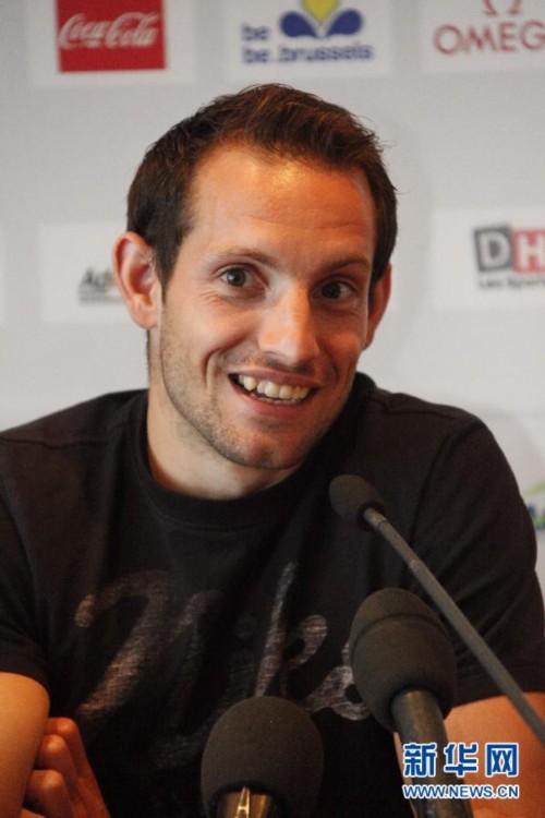 图为9月4日,法国选手拉维勒尼在国际田联钻石联盟大奖赛布鲁塞尔站新闻发布会上回答记者提问。 新华社发
