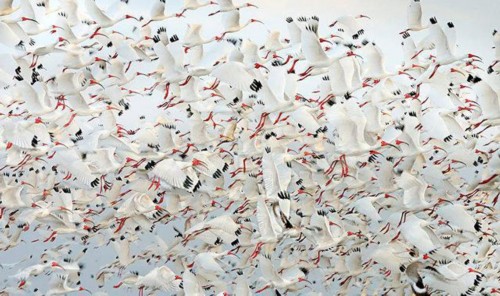 摄影师拍摄多种动物大迁徙的景象。图为白鹮。