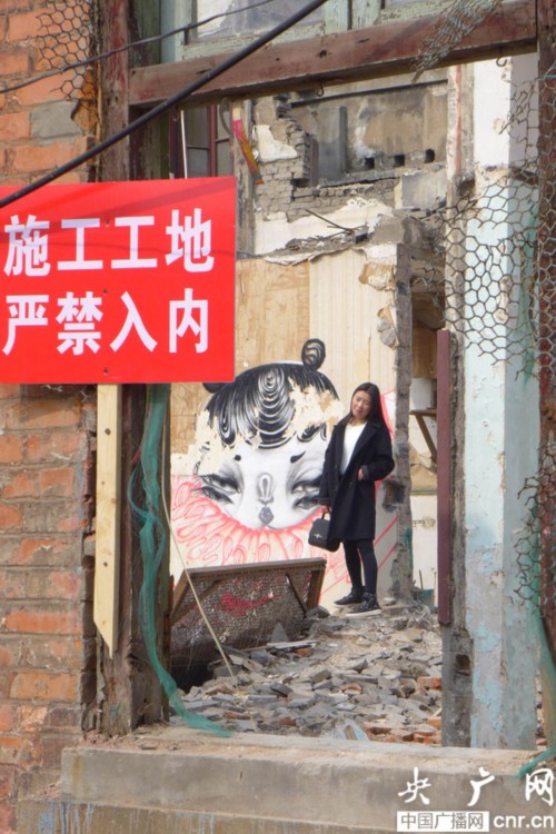 上海:拆迁“涂鸦墙”引人参观 施工方“毁画”并竖警示牌