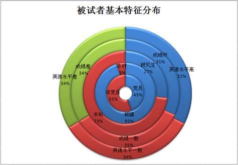 从被试者基本特征看,45%左右的被试者为党员,95%左右的被试者是城镇户口(户口迁移到学校者),27%左右的被试者是硕士研究生。被试者学习成绩和英语水平分布较为平均,均为30%左右,另外,被试样本平均的社团参与数量为1.085次,平均的实习经历为1.137次。