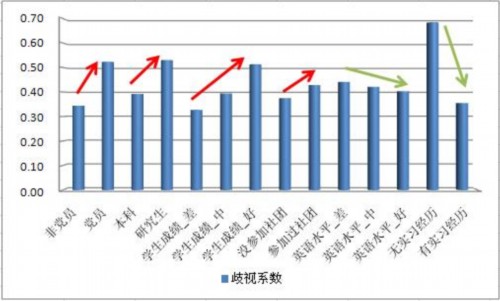 不同特征大学生性别歧视系数变化无论是总体样本还是分类样本,女性大学生平均收到的面试通知都要低于男性。