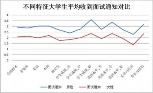 不同特征大学生平均收到面试通知对比报告建议,政府应加快反歧视相关法律的建设。当前我国反歧视方面的法律对于性别歧视的规定大多是笼统定义而无具体的参考规范,可操作性太弱,不利于女性维权,与发达国家在此方面的差距很大。