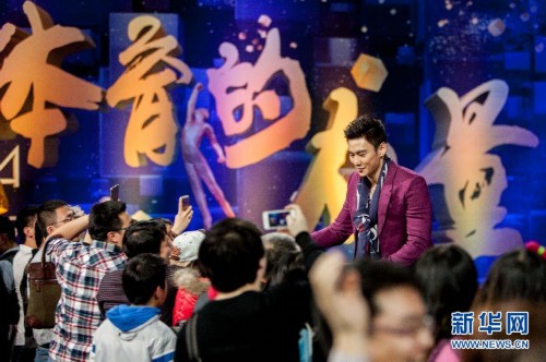 2月1日,中国国家游泳队队员宁泽涛在颁奖典礼红毯仪式上为支持者签名。当日,“2014CCTV体坛风云人物年度评选”颁奖典礼在京举行。新华社记者吴壮摄