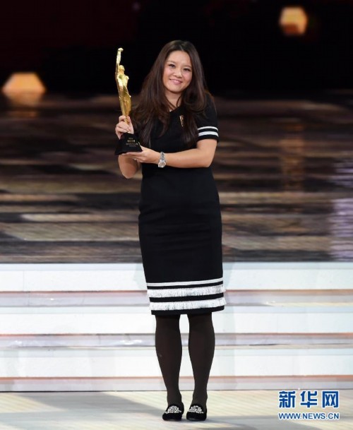 2月1日,网球名将李娜在颁奖典礼上。李娜因获得2014年澳网女单冠军而荣获年度最佳女运动员奖。当日,“2014CCTV体坛风云人物年度评选”颁奖典礼在京举行。新华社记者公磊摄