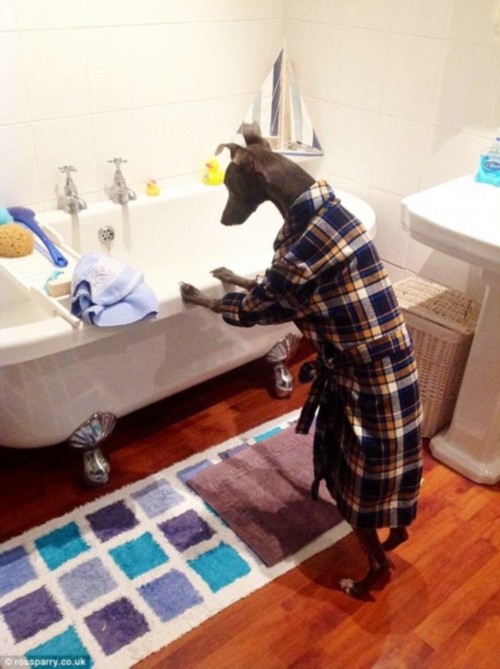 一只名叫鲁珀特的聪明小狗超级喜欢模仿人类各种动作,喜欢穿上人类的衣服,摆出各种各样的造型摆拍,它56岁的主人珍妮特·伯顿注意到它的爱好,为它拍了一系列的照片。在这些照片中,它像人类那样洗澡、玩游戏、读报纸、弹钢琴,甚至帮着主人做熨烫衣服、清扫除雪、洗车等各种家务。