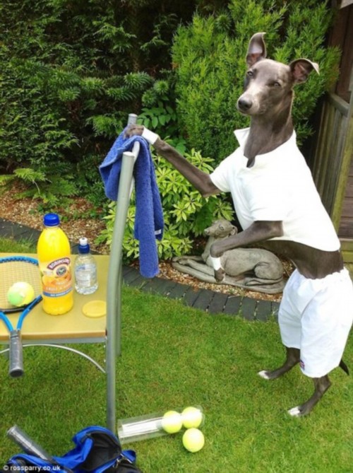 原标题:聪明萌狗超爱摆拍 喜欢模仿人类洗澡吃饭做家务