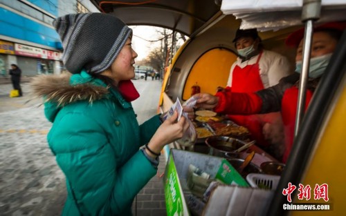 赵蕴辉的家境条件不好,父亲常年生病在家,母亲是个彻彻底底的盲人。她记忆中的快乐童年,在3岁时戛然而止。1995年的冬天,因为持续发烧,造成了赵蕴辉的视神经萎缩,而且不慎错过最佳治疗期。视力只有0.03,从医学上讲,她的眼睛已经失明。图为清晨的北京气温有零下4度,23岁的赵蕴辉离开借宿的舅舅家,八点整,她准时出现在永定门以南沙子口一座临时早餐车前,花两块五买了一份馅饼。
