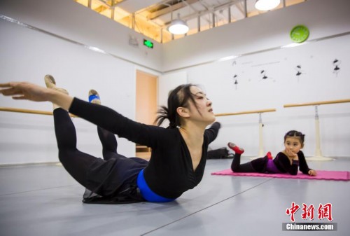 芭蕾舞小学员仔细地学着赵蕴辉的每一个动作,同时赵蕴辉向她介绍着芭蕾舞的相关知识。