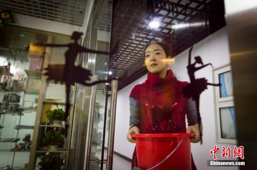 半个月前,赵蕴辉把自己的求职简历放到网上,这家芭蕾舞培训中心的负责人一眼就相中了她。虽然只做了两个星期,但赵蕴辉很珍惜这份工作。赵蕴辉穿过门外那条长长的走廊,端回来半桶水,用来清洁室内卫生,开始一天的准备工作。