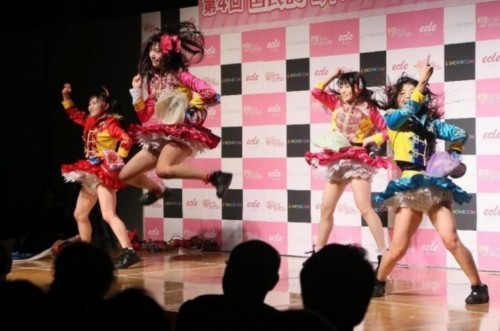 “萌女王大赛”大赛于2011年开始每年举办一届,2014年度曾停办一年,本次为第4届,比赛中曾经诞生过著名模特柊木理央。图为作为特别嘉宾出席的女团“假面少女”用劲歌热舞将会场气氛点燃。