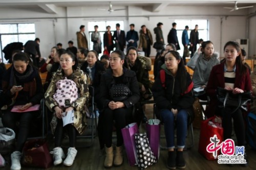 3月1日,山东艺术学院服装表演专业候考室,等候上场的美女与帅哥。(中国网图片库 摄影师郭志华)