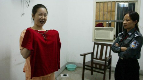 国际禁毒日前夜,武汉市四名女毒犯走到了她们生命的尽头。经有关部门和当事人允许,摄影记者走进了武汉市第一看守所。6月24日晚,武汉市第一看守所,女警按囚犯要求买来临刑前的服装,毒贩死囚代冬桂接过来在身上比试。