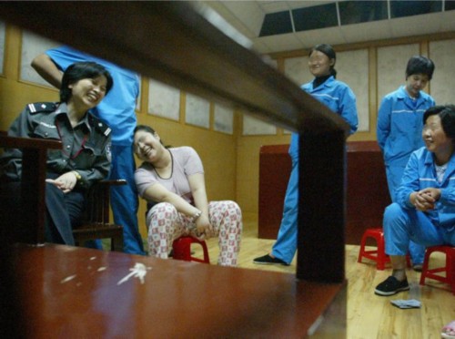 6月24日晚,武汉市第一看守所,毒贩死囚何秀铃临刑前夜与狱警及普通女囚在一起,她不时露出天性活泼的一面