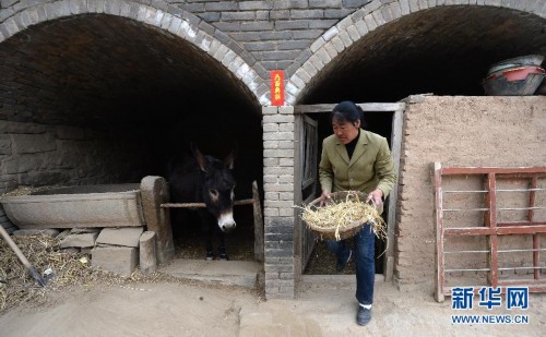 回家后,杨增叶要给家里的驴、羊、鸡喂食(3月17日摄)。 51岁的民办教师杨增叶,是陕西省横山县南塔镇高圪垯村小学唯一的一名老师,从1996年站上教师讲台开始,她默默坚守在这个黄土高原深处的乡村小学长达19年。 2005年因撤点并校,原本130多人的学校面临关闭,在学生家长的请求下,为了不让一些因特殊条件无法去镇上上学的孩子们辍学,杨增叶在其他老师离开后,开始了长达10年的独自教学。高圪垯村地理位置偏僻,离最近的镇子也要15公里,原本800多人的村庄,现在只有约200人居住,学校里也只剩下9个学生。杨增叶每天除了给4至14岁不同年级的学生上课,还要照料他们的生活,村里人都说她既当老师又当妈妈。作为民办教师,杨增叶全年的收入只有一万多元。因丈夫长年不在家,两个儿子又在外工作,家里的20多亩地全靠杨增叶一人打理。对于高圪垯小学的未来,杨增叶说:“只要还有一个学生上学,只要自己的身体还允许,我就一定会坚持下去。” 新华社记者 刘潇摄
