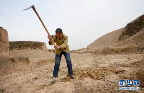 春耕将至,杨增叶挖玉米根,准备播种(3月17日摄)。由于丈夫长年不在家,两个儿子在外工作,家里的20多亩地全靠杨增叶一个人打理。 51岁的民办教师杨增叶,是陕西省横山县南塔镇高圪垯村小学唯一的一名老师,从1996年站上教师讲台开始,她默默坚守在这个黄土高原深处的乡村小学长达19年。 2005年因撤点并校,原本130多人的学校面临关闭,在学生家长的请求下,为了不让一些因特殊条件无法去镇上上学的孩子们辍学,杨增叶在其他老师离开后,开始了长达10年的独自教学。高圪垯村地理位置偏僻,离最近的镇子也要15公里,原本800多人的村庄,现在只有约200人居住,学校里也只剩下9个学生。杨增叶每天除了给4至14岁不同年级的学生上课,还要照料他们的生活,村里人都说她既当老师又当妈妈。作为民办教师,杨增叶全年的收入只有一万多元。因丈夫长年不在家,两个儿子又在外工作,家里的20多亩地全靠杨增叶一人打理。对于高圪垯小学的未来,杨增叶说:“只要还有一个学生上学,只要自己的身体还允许,我就一定会坚持下去。” 新华社记者 刘潇摄