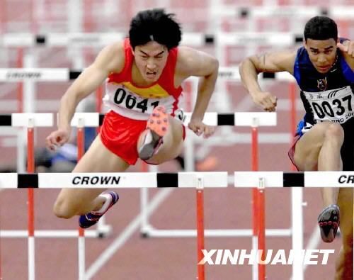 2001年8月28日,中国选手刘翔(左)在第21届世界大学生运动会男子110米栏决赛中,以13秒33的成绩夺得金牌。