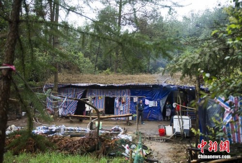 工人们合力在深山里搭建的住处,现在已经通水通电。杨华峰摄