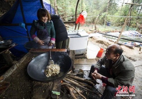 做晚饭时,因江西工人张敬发迟迟未将柴火烧旺,遭到了老婆的责备。杨华峰 摄