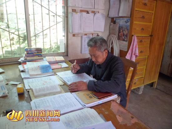 龙明宽认真的批改作业