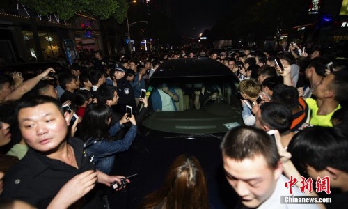 2015年4月26日凌晨,日本明星苍井空抵达长沙一酒吧献唱。刚一现身,就被数千位粉丝围堵。现场甚至交通瘫痪。杨华峰摄