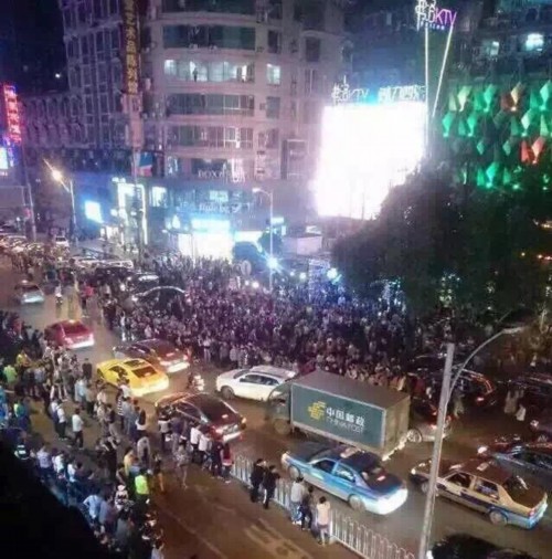 演出外的街道上几近瘫痪,围观人群挤到了马路上。