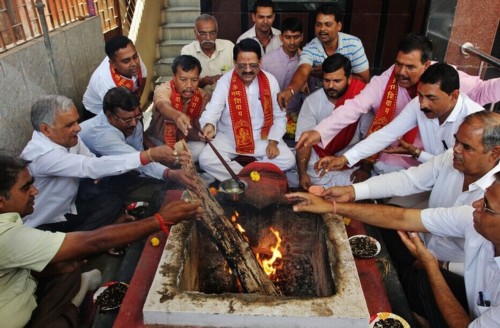 ■印度孟买,人们举行仪式为尼泊尔地震遇难者祈祷。