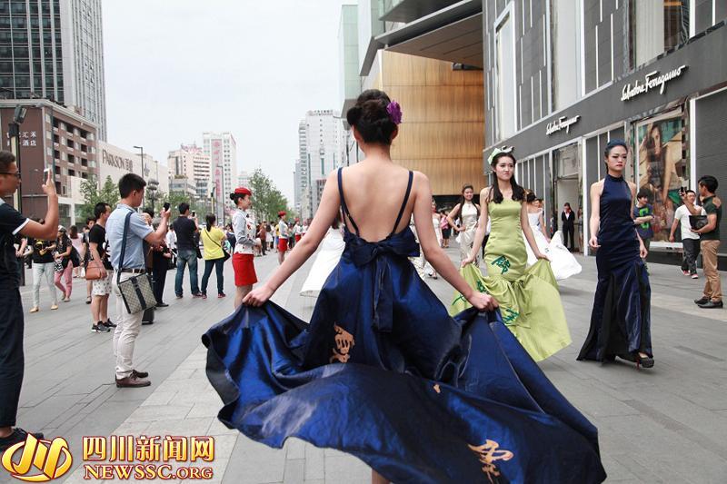 酷似景甜准空姐展示传统文化,高颜值引市民围观。