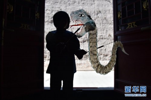 5月4日,一位“袖珍人”演员在皮影戏馆排练。新华社记者 詹彦 摄