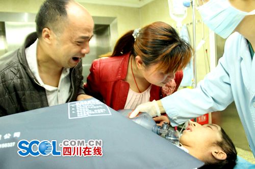 下午1:00左右,各项准备工作做好,钟先禄手里多了一捧鲜花,那是医院献给这对农村夫妇的敬意,不多时,插着管子的钟天亮被护士推着从手术室出来,霎时,哭声四起,钟先禄和刘元英紧贴儿子脸庞,不停把涌出来的泪水抹去,眼睛眨也不眨的盯着儿子,他们要再清晰的看儿子最后一眼……电梯旁,一位素不相识的老人,朝着推出来的钟天亮默默闭目,双手合十,送少年远行……