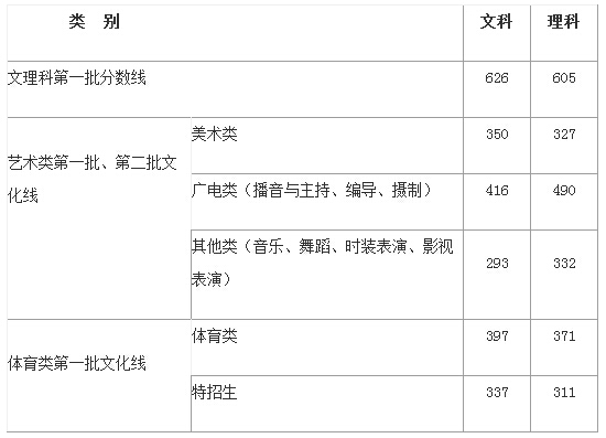 6月22日晚,浙江省高考成绩和首批控制分数线揭晓,文科一批分数线为626分,理科为605分。 6月26日至27日,考生可上网填报文理科第一批,艺术第一、二批,体育第一批,高职单考单招以及面向文成等12县定向招生志愿,自主招生(含农村学生单独招生)、高水平艺术团招生志愿同时填报。其余志愿后续分批填报。