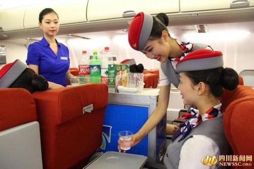 上午11点半,练习客舱服务技巧,很小的一件事对于空姐来说却很重要,她们要注意很多的细节。
