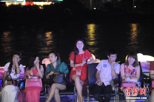 8月20日,农历七月初七,中国民众迎来一年一度属于自己的情人节。当晚夜幕降临后,百名单身单女盛装出席兰州黄河游轮上开展的相亲派对,用多彩气球妆点的水上巴士,船体上璀璨的灯光,会同天空的月亮映入黄河中,让兰州这座城市顿时“浪漫“起来。在40分钟的船程中,他们相互聊天交友、品尝美酒甜点、互动游戏,一起浪漫度“七夕”。中新社发 杨艳敏 摄