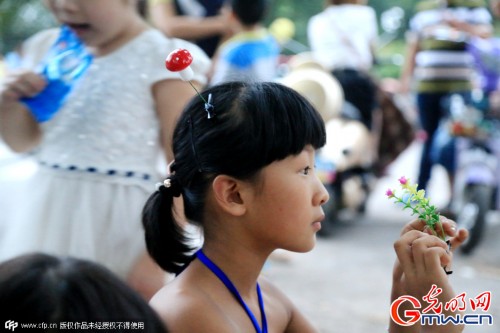 2015年09月05日,郑州,一个假期刚结束,豆芽花发卡突然在郑州遍地开花。9月5日,在郑州绿城广场、碧沙岗公园、人民公园等休闲场所,街边豆芽花发卡卖得十分火爆。