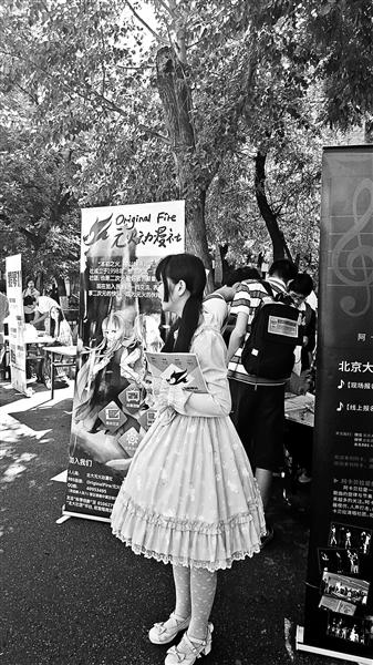 招新现场,北大官微的社员们特意租来“小黄人”道具服,站在招新区域入口处与大家合影,吸引了不少同学驻足观看。剑道社的同学们全副武装,摆好姿势,向同学们展示了剑道比赛的标准动作。古琴社和提琴社的同学们则拿起乐器,为在场同学进行了一场即兴演出。在人头攒动的元火动漫社招新展位前,一位社员穿着公主裙,装扮成动漫中的“萝莉”形象,向现场同学散发宣传单。元火动漫社的负责人告诉北京青年报记者,上午的招新才进行了不到2个小时,就已经招到了30多名新成员。据悉,元火动漫社在校会员共有2000人左右,是北大人数最多的社团之一。