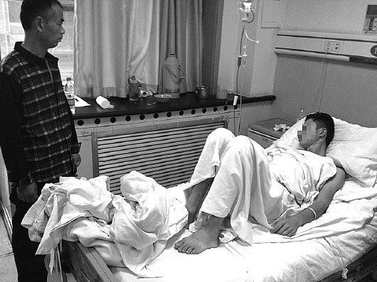 23日下午,记者来到市立五院见到了躺在病床上的小吴,小吴躺在病床上表情很痛苦,不愿多说话。