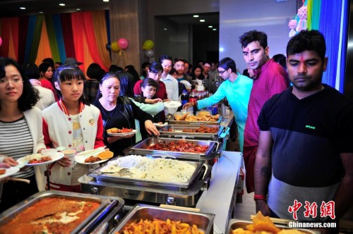 10月18日,从印度来的大厨献上纯正的美食。中新社记者 刘冉阳摄